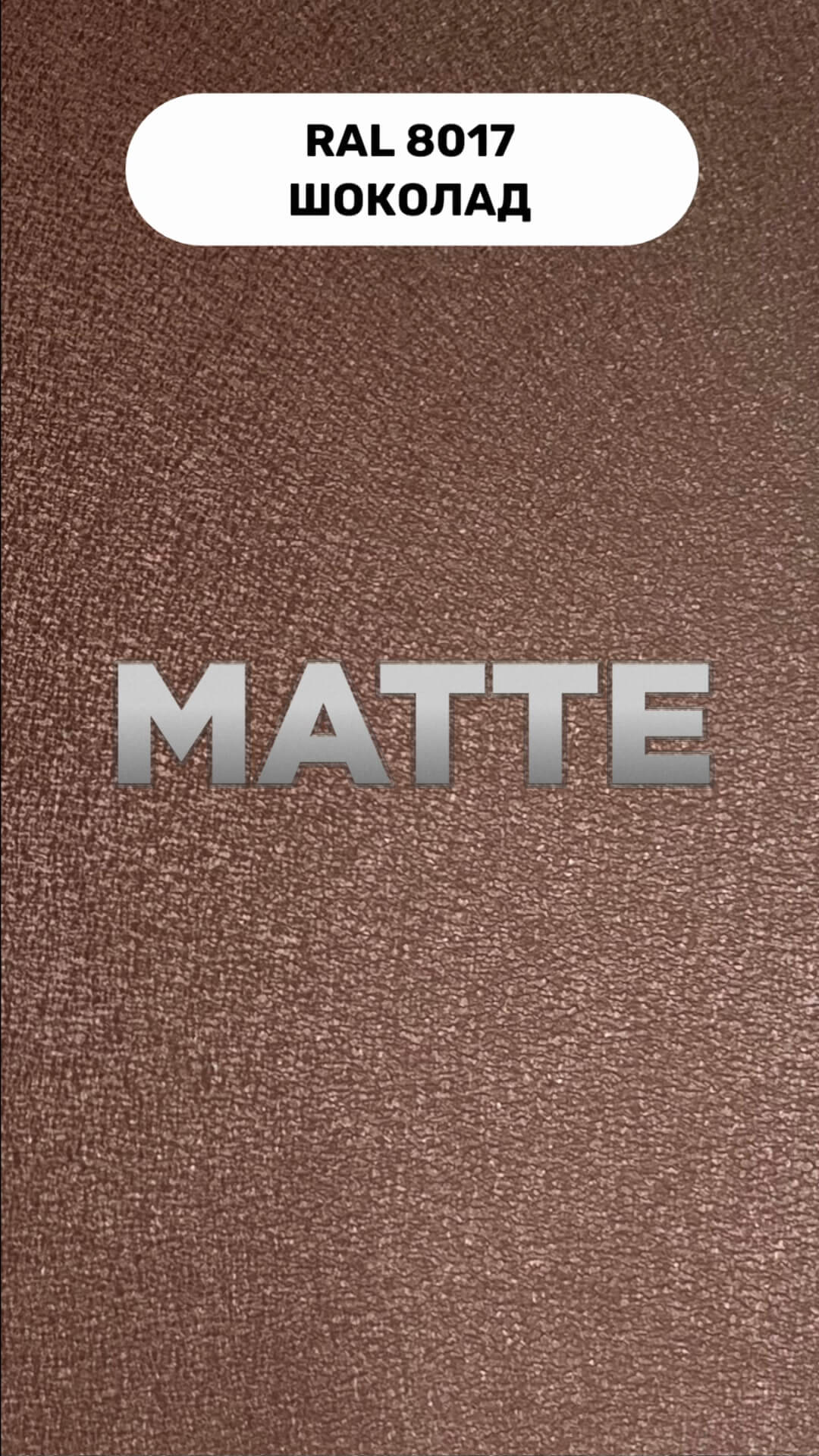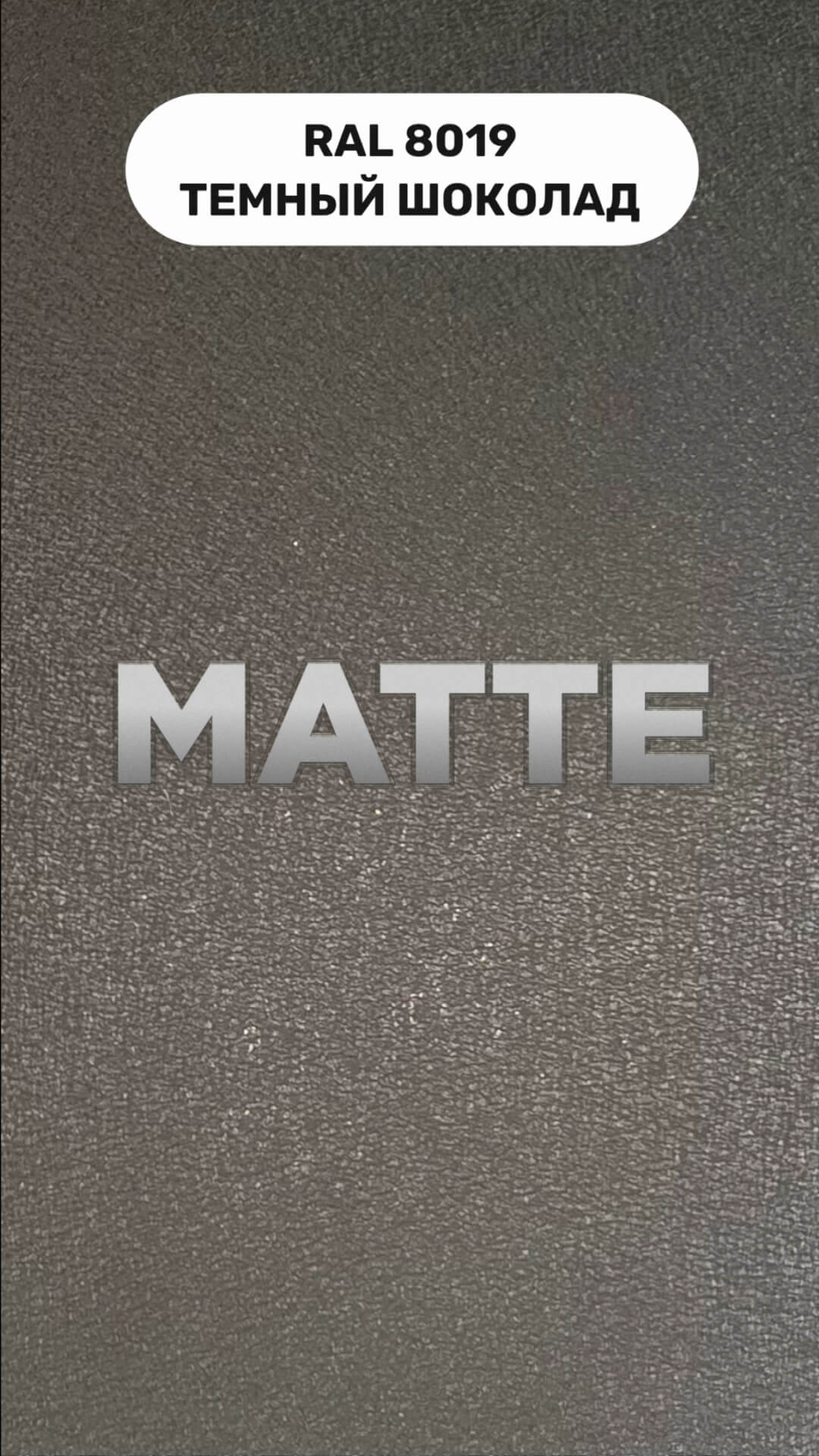 Одним из ярких представителей матового полиэстера является покрытие MATTE. Линейка представлена в четырех оттенках: RAL8017 Шоколад, RAL8019 Темный Шоколад, RAL7024 Серый Графит и RAL9005 Черный. Эти спокойные выдержанные цвета прекрасно совместимы с такими архитектурными стилями, как хай-тек и минимализм. Для заказа доступны два варианта покрытия: одностороннее, т.е. окрашивание только с лицевой стороны и двустороннее окрашивание как с лицевой, так и с внутренней стороны.