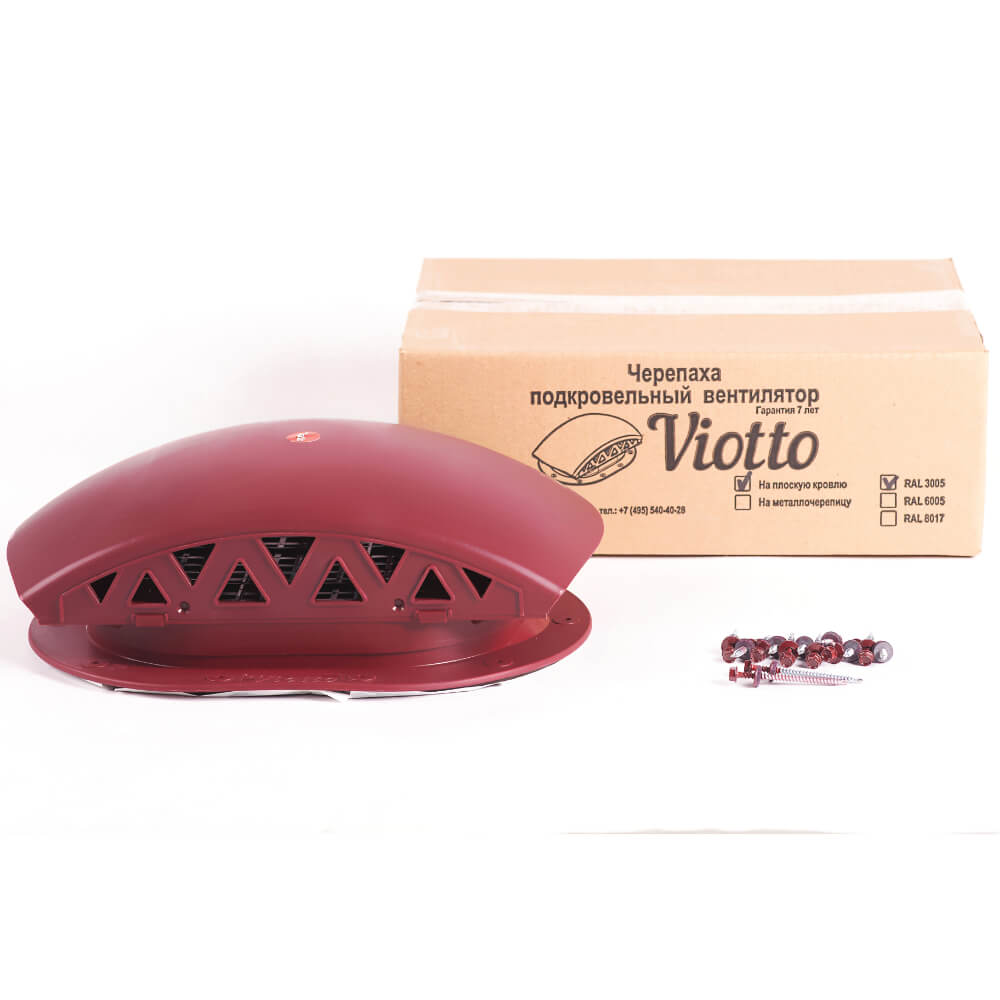 Подкровельный вентилятор "Черепаха" Viotto RAL 3005 Красное Вино для готовой мягкой и фальцевой кровли в Туле