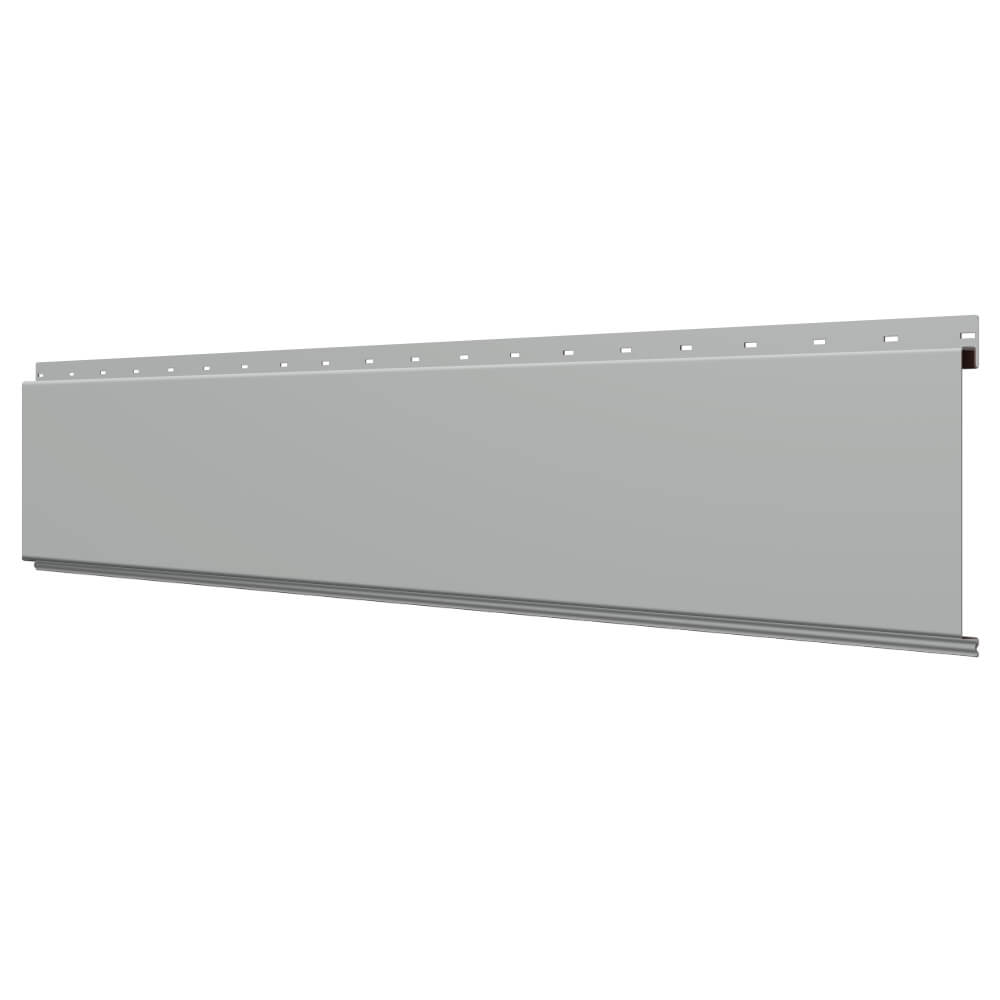 Линеарная потолочно-стеновая панель ГЛАДКАЯ цвет RAL9006 Серебро применяется в качестве софитов для подшивы крыши, наружной и внутренней отделки потолков, стен, фронтонов фасада дома в Туле.