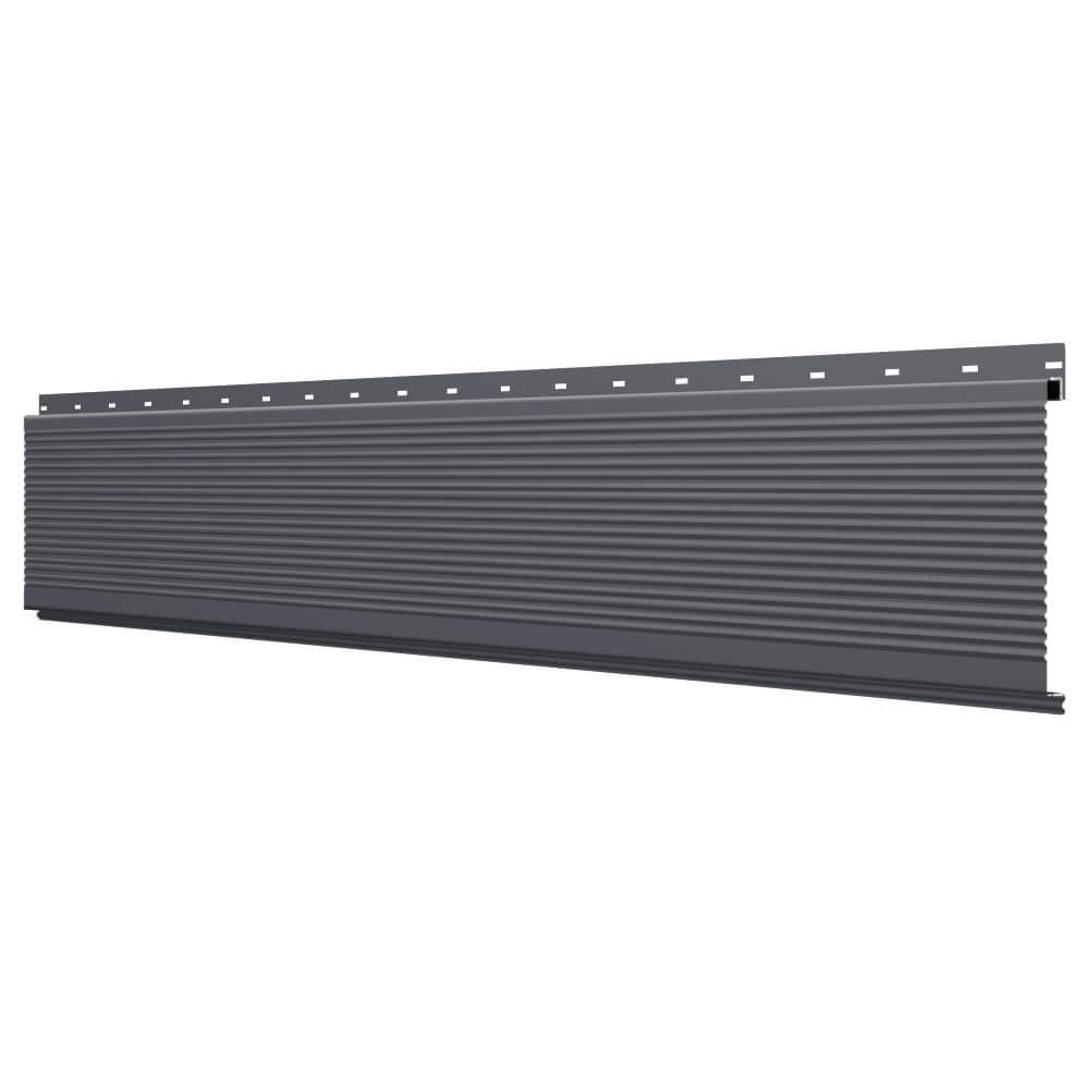 Линеарная потолочно-стеновая панель РИФЛЕНАЯ усиленная цвет RAL7024 Серый Графит применяется в качестве софитов для подшивы крыши, наружной и внутренней отделки потолков, стен, фронтонов фасада дома в Туле.