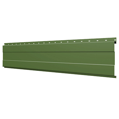 Линеарная потолочно-стеновая панель с ПОЛОСОЙ усиленная цвет RAL6002 Зеленый Лист применяется в качестве софитов для подшивы крыши, наружной и внутренней отделки потолков, стен, фронтонов фасада дома в Туле.