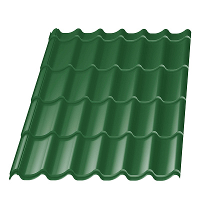 Металлическая черепица Меркурий цвет RAL 6002 Зеленый Лист имеет профиль внешне на кровле напоминающий классическую керамическую черепицу. Меркурий — это обновленный аналог профиля металлической черепицы для кровли крыши. Форма профиля имеет богатый внешний вид напоминающий небольшие набегающие волны. Лучшие показатели герметизации сделали профиль Меркурий гарантом стабильной и долговременной службы на крышах в Туле. Данный профиль отличается не только своим качеством и практичностью, но и благородным внешним видом.