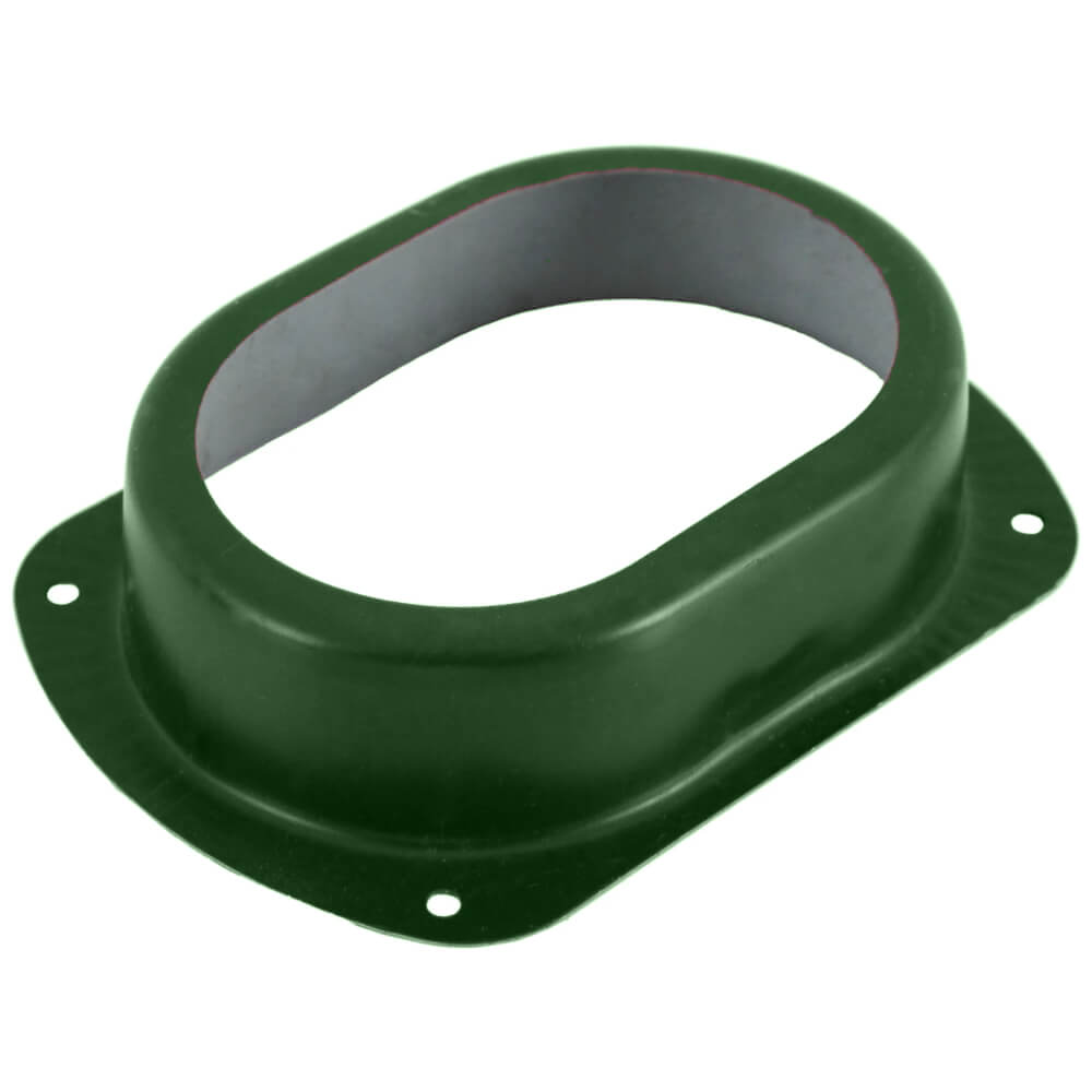 Воронка врезная выпускная 76*102 RAL P362 Зеленый организует точку слива воды из желоба в трубу в установленном месте. Является универсальной: она служит для присоединения к прямоугольному желобу, как прямоугольной трубы, так и круглой.