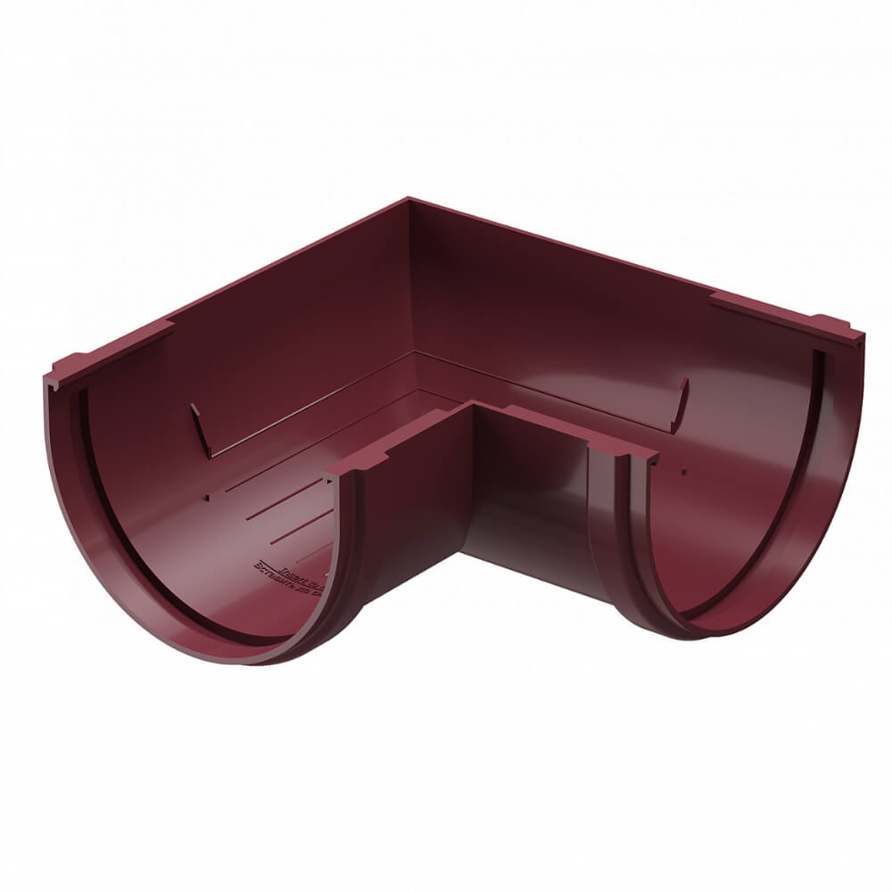Угловой элемент желоба универсальный ДЕКЕ STANDARD d120мм 90 градусов цвет RAL 3005 Красный в Туле. Угловые элементы устанавливаются как на внешних, так и на внутренних углах кровли и предназначены для соединения желобов.