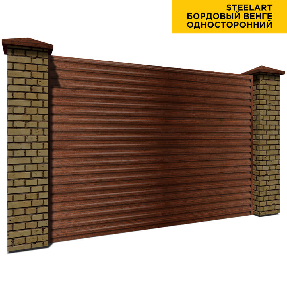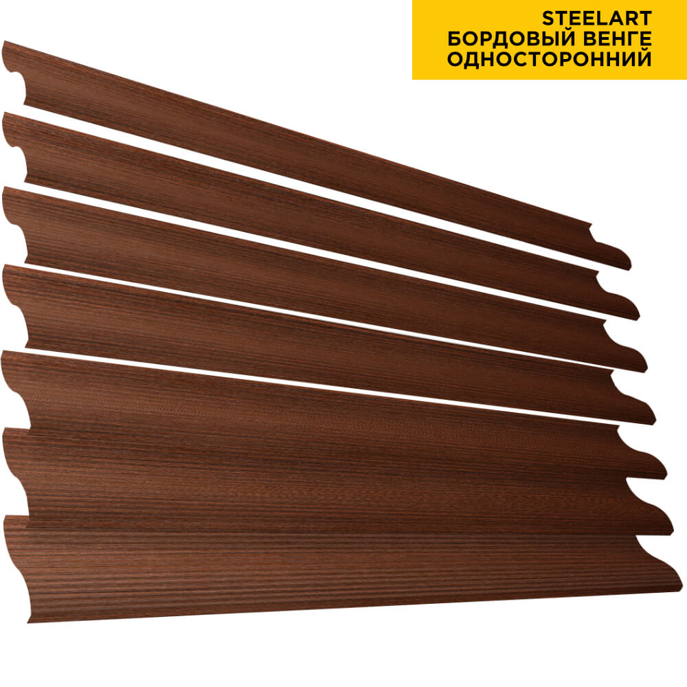 Ламель Еврожалюзи металлическая S-образная, цвет под дерево Бордовый Венге SteelArt Россия одностороннее покрытие, длина любая кратно 1см под заказ - для забора-жалюзи, беседки, перголы в Туле.